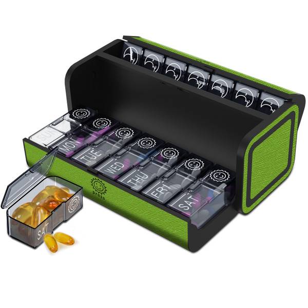 This Twice-a-Day AM/PM pill organizer features 14 spacious compartments, holding up to 40 tablets, 20 capsules, 12 fish oil supplements, or 18 vitamins. Each compartment is divided into AM and PM sections, providing a clear reminder for timely medication intake. The removable compartments offer ultimate convenience. Carry your AM and PM doses separately in a pocket, purse, bag, or suitcase – perfect for travel! This pill organizer is easy to use and clean, space-saving, and ensures you never miss a dose again. Ideal for seniors and anyone needing a reliable medication management solution.