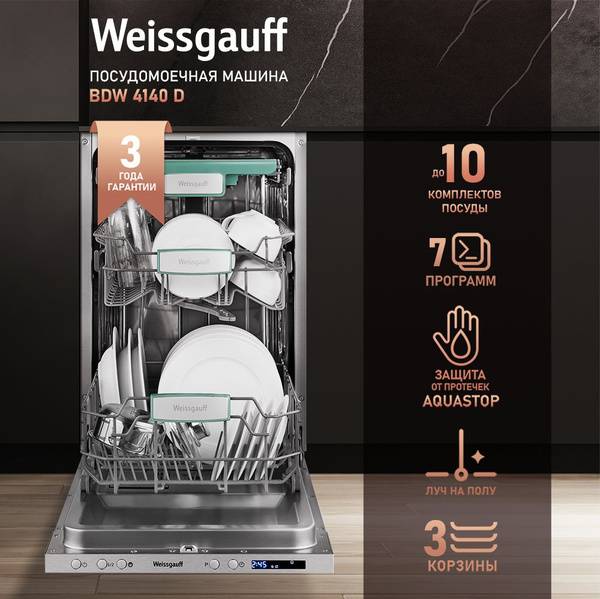 The Weissgauff BDW 4140 D combines cutting-edge technology with stylish design, delivering a premium dishwashing experience. Its compact size, advanced features, and reliable performance make it the perfect addition to any modern kitchen.