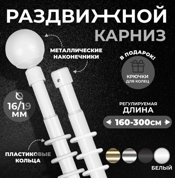 Elevate your home décor with the LM DECOR double row telescopic metal curtain rod. This versatile rod, featuring a sleek white gloss finish, accommodates both curtains and sheers, adding elegance and style to any room. Easily adjustable from 160cm to 300cm, it perfectly fits various window sizes. The durable 16/19mm metal tubes and brackets ensure lasting quality, while the smooth gliding plastic rings and hooks provide effortless operation. Complete with all necessary hardware and easy-to-follow instructions, installation is a breeze. The stated length excludes finials; add 10cm to the total length for "Sphere" finials. Bracket protrusion from the wall is 15.5cm. Choose from a range of stylish colors to complement your existing décor. Create a cozy and inviting atmosphere in any space. Explore our complete range of curtain rods and roller blinds by clicking on the LM DECOR logo. Happy shopping!