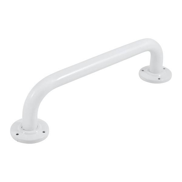 Description: The "Ginger Cat" 30cm white metal bathroom grab bar (B0893P) provides secure support for individuals with mobility challenges, back problems, or general weakness. Its sturdy construction, featuring powder-coated metal and a simple screw-in installation (hardware included), ensures reliable assistance during bathing and hygiene routines. This grab bar enhances bathroom safety and promotes independent living. Supports up to 80kg. Diameter: 2.5cm. Packaged in a headered PVC bag.