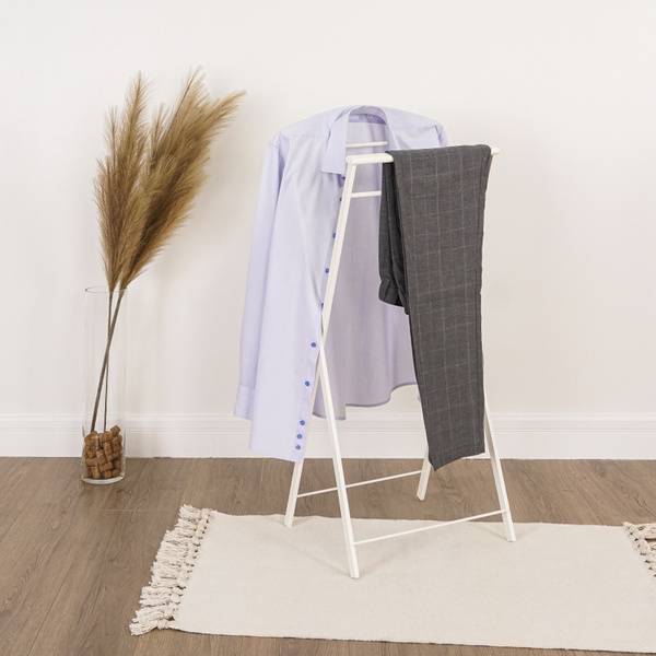 The ZMI Contour freestanding garment rack is the perfect solution for organized clothing storage. Crafted from durable powder-coated steel, this Russian-made clothes rack features multiple bars for trousers and a double hanging rod for suits and jackets, allowing for compact and efficient storage. Its optimal width and classic white design complement any room's décor. Sturdy iron legs ensure stability, while the open design keeps everyday clothes readily accessible. The thoughtfully designed bar prevents creasing, minimizing ironing. A dedicated trouser bar makes it ideal for families with ample clothing. The double rod maximizes space, perfect for bedrooms or offices. Accommodating diverse clothing types – from children's school uniforms to adult suits, jeans, and shirts – it even allows for garment steaming. The stylish rack arrives conveniently packaged for easy transport and makes a thoughtful gift. Direct from the manufacturer, it offers exceptional quality and a 3-year extended warranty.