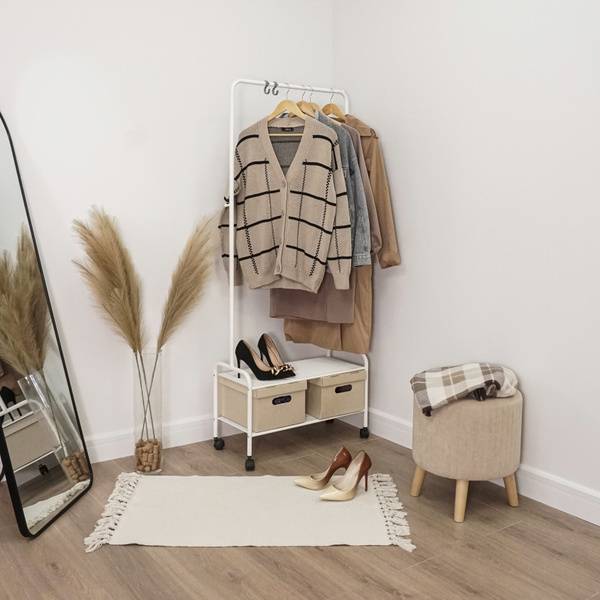 Freestanding clothes rack, metal garment rack, clothes storage, shoe storage, rolling clothes rack, garment rack with wheels, ZMI Valencia 22M, wardrobe rack, clothing rack, metal storage rack, hallway storage, bedroom storage, apartment storage, white clothes rack, Russian manufacturer, 3-year warranty, easy assembly, mobile clothes rack, space saving storage, clothes steaming stand, gift idea, housewarming gift.