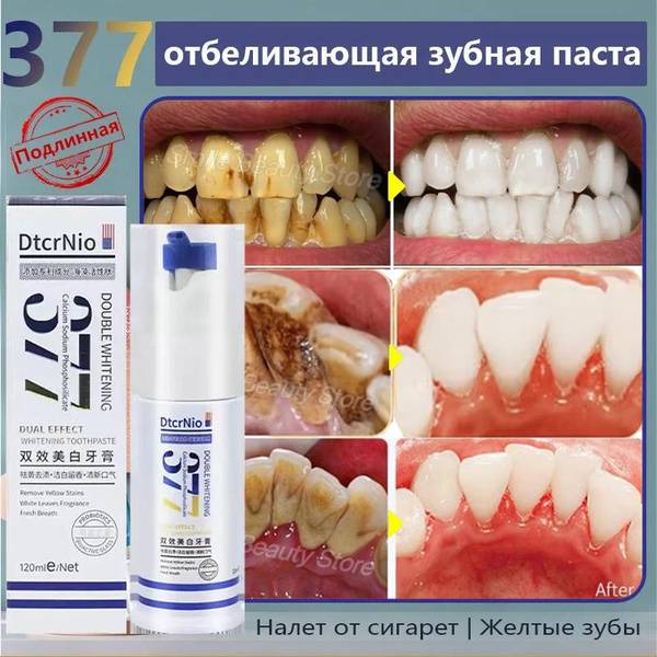 Experience a brighter smile with our 377 Whitening Toothpaste (120g). Effectively removes stains from tobacco, tea, coffee, and plaque buildup, promoting superior oral hygiene. 3-year shelf life.