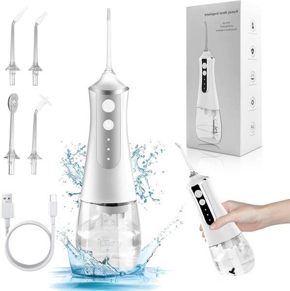 Upgrade your oral care routine with this advanced cordless water flosser. Boasting 8 attachments, 5 adjustable pressure levels, a large 300ml tank, and a splash-proof design, it’s the ultimate solution for thorough and comfortable cleaning. Includes a complimentary cosmetic case. Achieve a healthier, cleaner mouth with this powerful yet gentle cordless water flosser. 8 attachments, 5 pressure settings, and a convenient travel case make it perfect for everyday use.