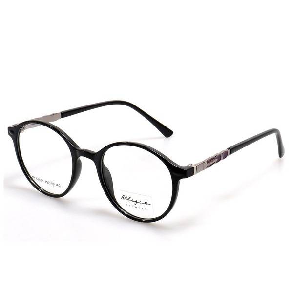 "description": "Stylish and sophisticated women's eyeglasses with a classic round/panto shape in sleek black. Crafted from a comfortable, high-quality combined material.",