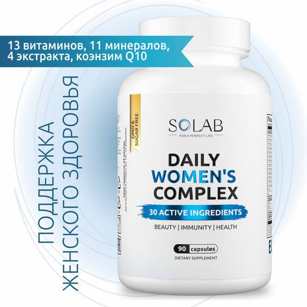 SOLAB's Daily Women's Multivitamin Complex provides a comprehensive blend of 30 essential vitamins and minerals to support overall women's health. This daily supplement is formulated to address specific needs throughout a woman's life.