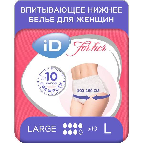 Experience ultimate confidence and discretion with iD PANTS For Her absorbent underwear. Designed for active women experiencing moderate bladder leakage, these comfortable and protective pants allow you to maintain your active lifestyle without compromise. The snug, body-hugging fit ensures a discreet feel under clothing, while superior absorbency provides reliable protection against leaks and odors. Made with soft, breathable materials for all-day comfort, iD PANTS For Her offers superior protection and peace of mind. Choose size L, 10-count pack.