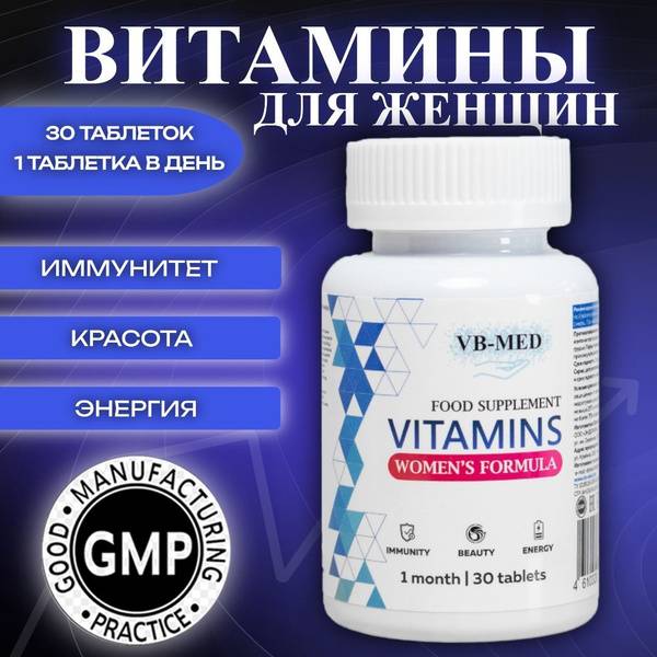 VB-MED's Women's Multivitamin is a scientifically formulated supplement designed to address vitamin and mineral deficiencies caused by stress, overwork, poor sleep, age, and unbalanced diets. This GMP-certified formula supports immune function, protein synthesis, and overall well-being, promoting healthy skin, hair, nails, and increased energy levels. Experience improved resistance to illness and enhanced vitality. This multivitamin contains [List specific vitamins and minerals with amounts and benefits]. For optimal results, take [Dosage] daily with food.