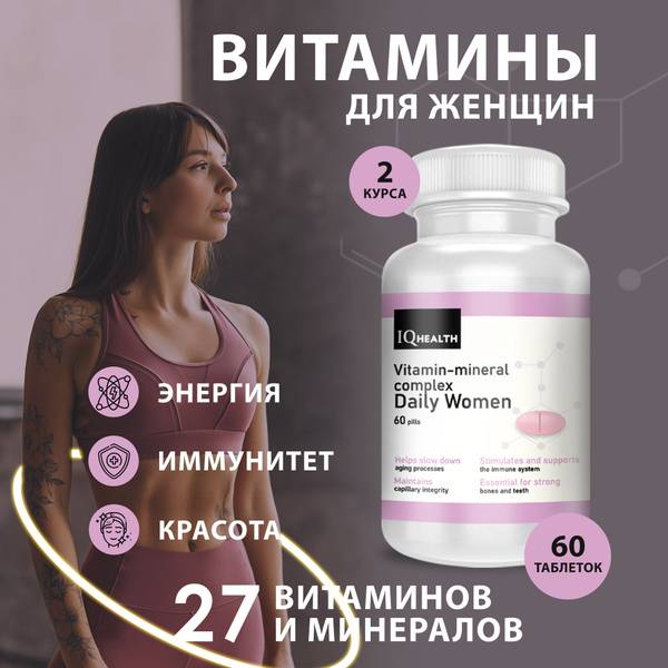 Looking for the perfect gift for the women in your life? IQHealth's DAILY WOMEN multivitamin is a high-quality dietary supplement formulated specifically for women's health and beauty needs. This comprehensive 1500mg tablet contains 27 essential vitamins and minerals, including Vitamin A, C, E, B-complex vitamins, D3, K1, biotin, and key minerals like calcium, magnesium, and zinc. Support healthy hair growth, radiant skin, strong nails, and a boosted immune system. DAILY WOMEN also helps improve cognitive function, manage PMS symptoms, and contribute to a healthy weight. Formulated with natural and safe ingredients, this daily vitamin provides a holistic approach to women's wellness. Give the gift of health and beauty this year – or treat yourself! One tablet daily, taken with food.