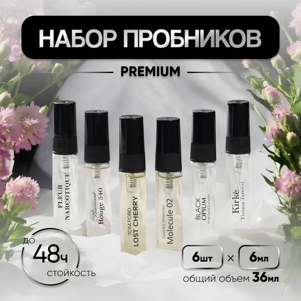 Discover the perfect gift with this luxurious 6-piece women's perfume sample set. Experience iconic fragrances inspired by Molecule 02, Fleur Narcotique, Kirke, Baccarat Rouge 540, Black Opium, and Lost Cherry. Each 6ml spray bottle provides a long-lasting scent – up to 48 hours on skin and 3 days on clothing! This exquisite oil-based perfume set offers a captivating blend of sophistication and allure, making it an ideal treat for yourself or a cherished gift. Lasting 2-3 months, it's the perfect introduction to your new signature scent. From Perfume Lab.