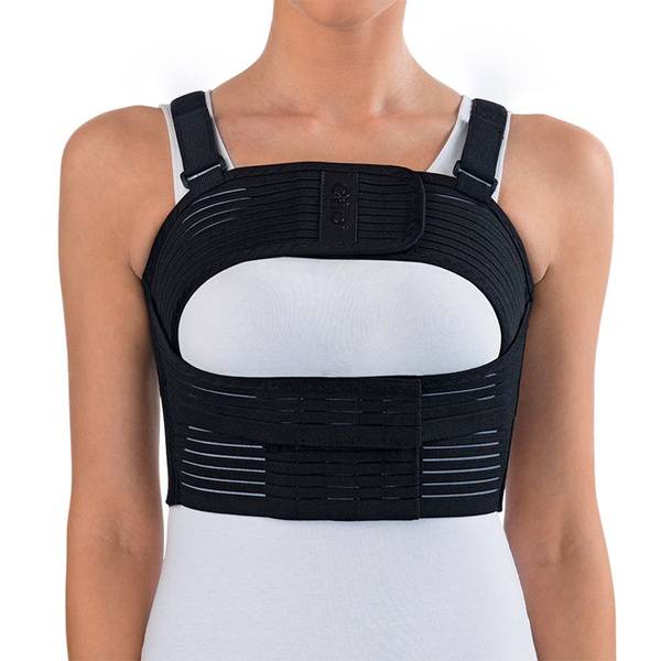 Description: The Orto BGC 422 post-surgical chest support bandage offers gentle, adjustable support for women recovering from chest surgery or injury. This lightweight, anatomical design features elastic fabric reinforced with metal plates for superior stability. Discreet Velcro closures allow for easy adjustment and a comfortable fit. Its purpose is to stabilize the chest, gently restrict breathing excursions while preserving natural muscle tone, reduce pain, and promote optimal scar tissue formation. Indicated for: chest injuries, rib fractures, costochondritis, rib cartilage perichondritis, post-operative rehabilitation (chest surgeries), intercostal neuralgia, and chest immobilization.