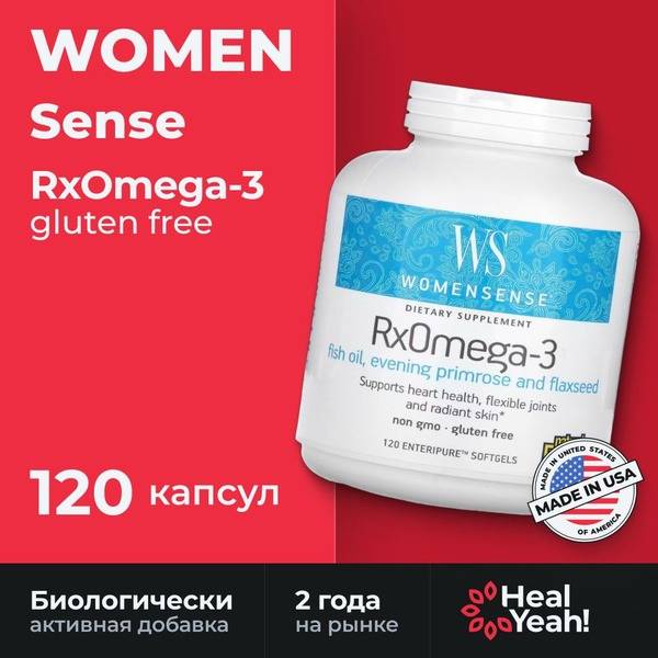 WomenSense, RxOmega-3, Natural Factors, fish oil, omega-3, EPA, DHA, ALA, GLA, heart health, joint health, skin health, radiant skin, enteric-coated, molecularly distilled, pharmaceutical-grade, gluten-free, supplements, vitamins, women's health, USA, Natural Factors supplements.