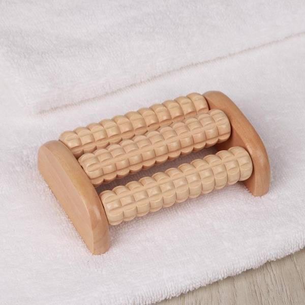 wooden foot massager, foot massager with rollers, spiked roller massager, neck massager, back massager, reflexology massager, Altai birchwood massager, pain relief, tension relief, muscle relaxation, improve circulation, energy boost, mobility, well-being, self-care, wooden health product, handheld massager, compact massager.