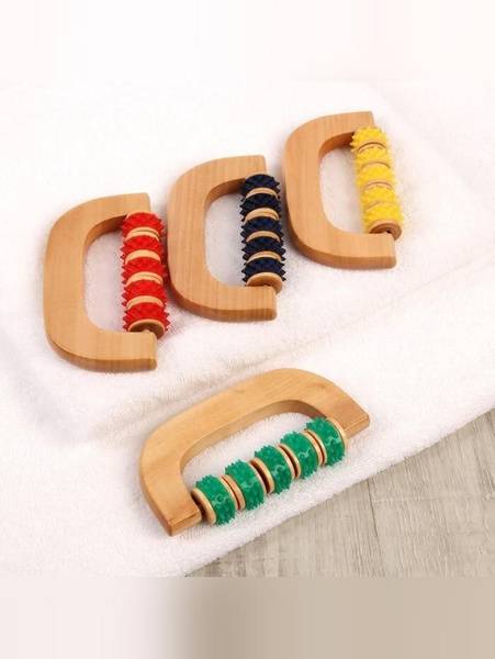 Experience deep relaxation and revitalize your body with our exquisite wooden roller massager. Its five spiked wheels target acupressure points, relieving tension, stress, and depression. Regular use improves circulation, skin nourishment, and glandular function, leaving you feeling energized and rejuvenated. Enjoy a few sessions per week to maintain healthy, vibrant skin and a toned physique. Simply clean with mild soap and water and dry with a soft cloth for lasting use.