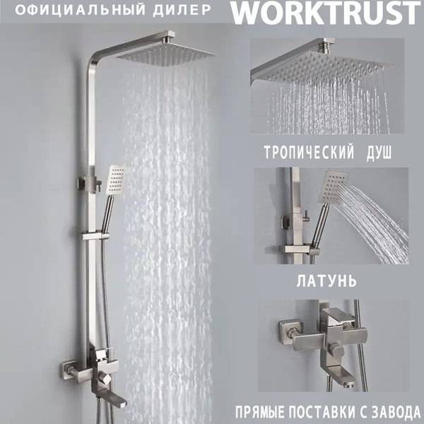 Upgrade your shower experience with the WORKTRUST WT2404-5 shower system. This luxurious, satin silver model features a durable construction of SUS304 stainless steel and brass, ensuring lasting quality and resistance to corrosion. Enjoy three distinct showering options: a large 250mm x 250mm rainfall showerhead, a handheld showerhead, and a swivel spout. The single-lever mixer with a ceramic cartridge provides effortless temperature and flow control. The telescopic shower bar is adjustable in height from 880mm to 1400mm, accommodating various shower spaces. Perfect for shower enclosures, bathtubs, and standard bathrooms. The WORKTRUST WT2404 series is available in several stylish finishes including silver (WT2404-5), black (WT2404-6), gold (WT2404-3), and white (WT2404-8). Note: You may find silicone lubricant residue on the shower system; this is for protection during shipping and easily removed with soapy water. Your shower system arrives securely packaged in a sturdy box and protective film. Experience the ultimate in showering luxury with WORKTRUST.
