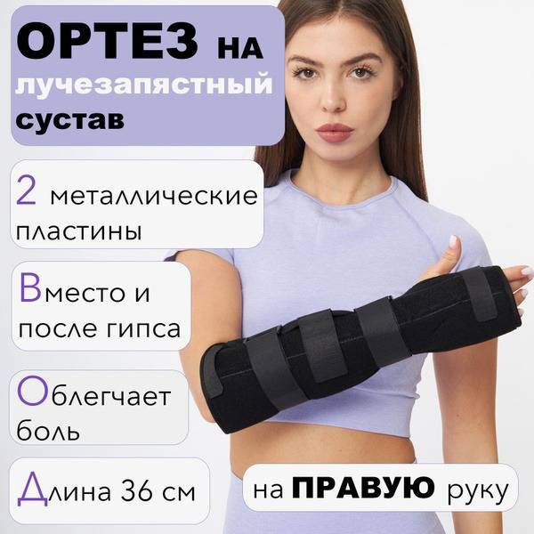 Description: This 36cm wrist brace provides strong support and stabilization for the right wrist and hand. Featuring a rigid metal plate, it offers superior immobilization, reducing strain on joints and tendons. Ideal for preventing and treating wrist injuries and conditions, as well as post-operative recovery, this brace offers adjustable compression for a customized fit. Made with comfortable, hypoallergenic materials, it's easy to put on and take off, allowing for all-day wear without slippage or restricting hand movement. A left-handed version is also available. This wrist support is perfect for those seeking reliable pain relief and improved wrist function.