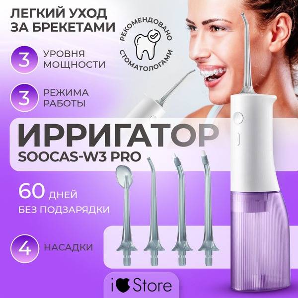 Description: The Soocas W3 Pro irrigator significantly improves oral hygiene. Studies show that 90% of Russians suffer from gum disease, and brushing alone isn't enough. Even meticulous brushing misses up to 40% of hard-to-reach areas. This improper cleaning leads to several issues: bacteria buildup causing gum inflammation and redness, and trapped food particles leading to bad breath. The Soocas W3 Pro effectively cleans these "blind spots." Its 0.6mm precision water jet penetrates deep between teeth, removing food particles and preventing harmful bacteria growth, leaving your mouth feeling incredibly clean and healthy. Experience superior oral care with the Xiaomi Soocas W3 Pro.
