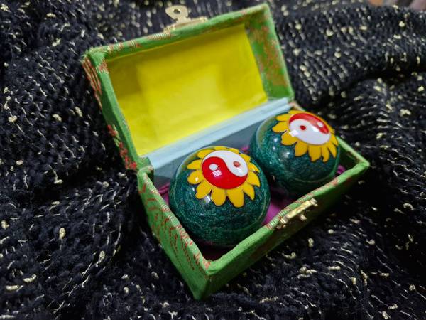 Originally used by martial artists for rehabilitation and focus enhancement, these balls stimulate acupressure points in your hands, promoting energy flow according to Traditional Chinese Medicine principles. Packaged in an elegant fabric-lined gift box (10.5x5.5x5.5cm). Emerald green finish. Includes two balls.