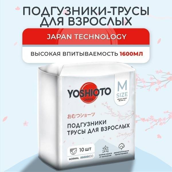 Experience superior comfort and absorbency with Yoshioto M Adult Diaper Briefs. Designed for active individuals and those with limited mobility, these breathable diapers are ideal for managing moderate to heavy incontinence. Made with eco-friendly materials, free from chemical bleaches and fragrances, they are hypoallergenic and dermatologically tested. The advanced absorption system neutralizes odor, maintains healthy skin pH, and provides rapid absorption. Waist/hip size: 80-120cm. Pack of 10.