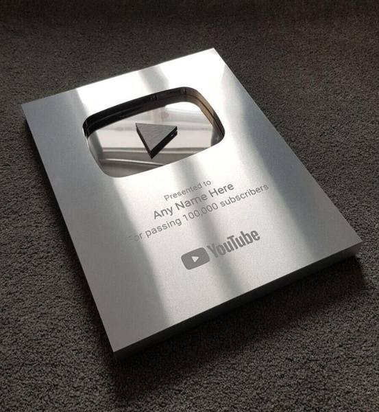 Commission a high-quality, custom-made YouTube Silver or Gold Play Button commemorating your 100,000 subscriber milestone. Provide your desired text and we'll craft a unique award to celebrate your achievement. Contact us today to get started!