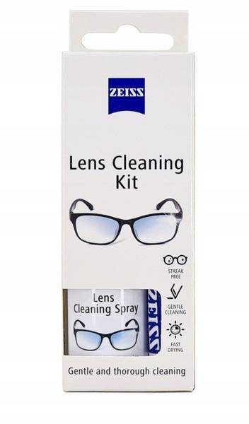 Maintain the pristine clarity of your Zeiss lenses with this premium cleaning kit. The set includes a 30ml bottle of Zeiss specialized lens cleaning spray and a large (150x180mm) microfiber cleaning cloth. This powerful yet gentle formula effortlessly removes dust, fingerprints, and other smudges from all types of lenses, including those with advanced coatings. The high-quality microfiber cloth ensures a streak-free shine, leaving your lenses sparkling clean and protected. Perfect for both polymer and glass lenses, this kit provides long-lasting clarity and is ideal for the daily care of your eyeglasses. Simply spray a small amount onto both sides of your lenses and wipe clean with the included cloth or a similar soft, lint-free material. Experience the Zeiss difference – superior cleaning for superior vision.