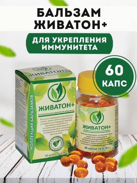 Zhivaton+, Zhivaton Balsam, immune support, natural supplement, vitamins, microelements, tissue regeneration, cardiovascular health, gastrointestinal health, skin health, nervous system support, musculoskeletal health, diabetes, cholesterol, arthritis, liver support, thyroid health, detoxification, stress relief, fatigue relief, post-surgical recovery, capsules, Siberian cedar resin, cedar oil, sea buckthorn oil, flaxseed oil, propolis, herbal remedy, natural remedy, dietary supplement, health supplement, wellness supplement.