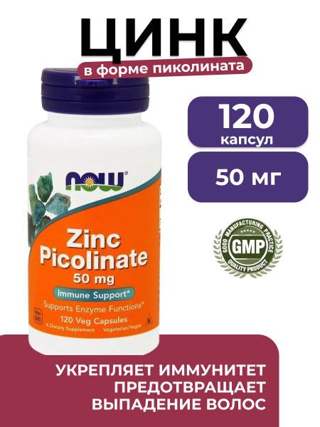NOW Zinc Picolinate 50mg, 120 Capsules