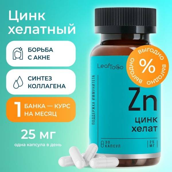 Chelated Zinc, Zinc Supplement, Zinc Bisglycinate, Skin Health, Hair Growth, Nail Health, Acne Treatment, Hair Loss Treatment, Immune Support, Antioxidant, Anti-inflammatory, LeafToGo, Dietary Supplement, Men's Health, Women's Health, Pre-Pregnancy, Diabetes, Cognitive Function, Muscle Health, Vision Health, Russian Supplement, High Bioavailability Zinc.