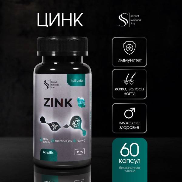 Description: Secret Success Line Zinc (60 capsules) provides essential zinc citrate (without titanium dioxide) for men and women. Zinc is a vital micronutrient playing a crucial role in numerous bodily functions, including immune system support, hormone production, and energy generation. It's essential for healthy skin, hair, and nails, contributing to collagen production and cell regeneration. A zinc deficiency can lead to dry skin, brittle hair and nails, and a weakened immune system. Supplementing with zinc supports overall health, vitality, and helps maintain strong defenses against infections. Choose Secret Success Line Zinc for comprehensive wellness.