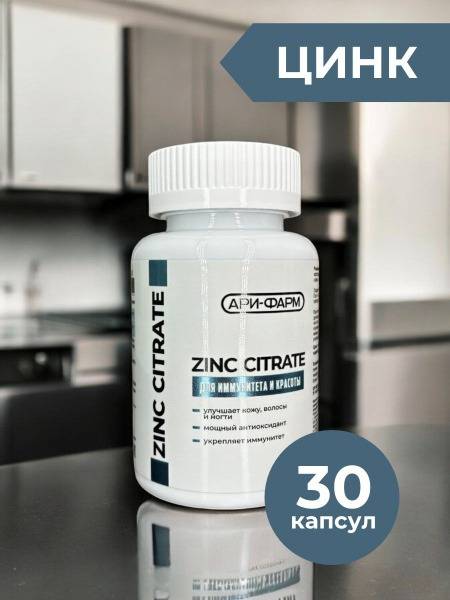 <img src="product_image.jpg" alt="ARI-PHARM Zinc Citrate Supplement - 30 Capsules">