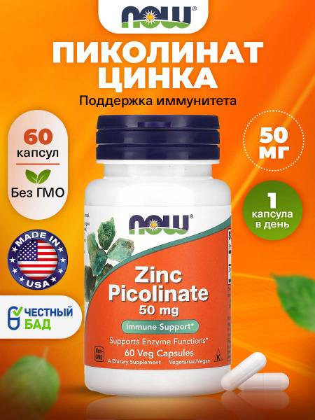 Title: NOW Zinc Picolinate 50mg - 60 Veggie Caps for Immune Support, Hair Growth, Skin Health & Men's Vitality