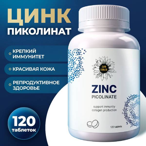 Take one SUN FLOWER Zinc Picolinate tablet daily. Consult your physician before use if you are pregnant, breastfeeding, or under 18 years of age. Discontinue use if you experience any adverse reactions. [Keyword: daily supplement, zinc dosage]